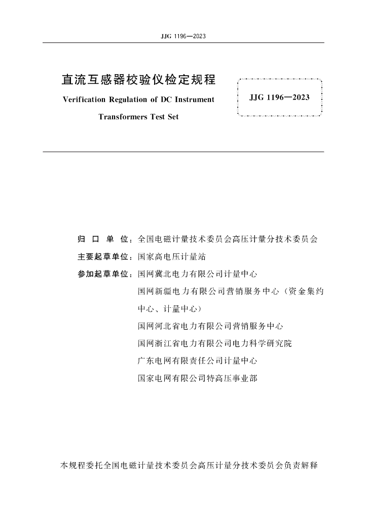 国家高电压计量站、国网冀北电力有限公司计量中心、国网新疆电力有限公司营销服务中心(资金集约中心、计量中心)、国网河北省电力有限公司营销服务中心、国网浙江省电力有限公司电力科学研究院、广东电网有限责任公司计量中心、国家电网有限公司特高压事业部