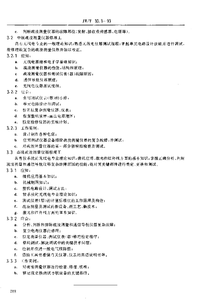 JT/T 30.3-1993 交通行业工人技术等级标准航道疏浚疏浚测量仪器修理工