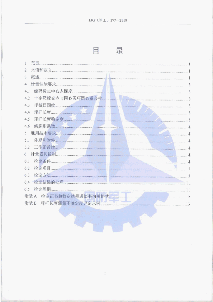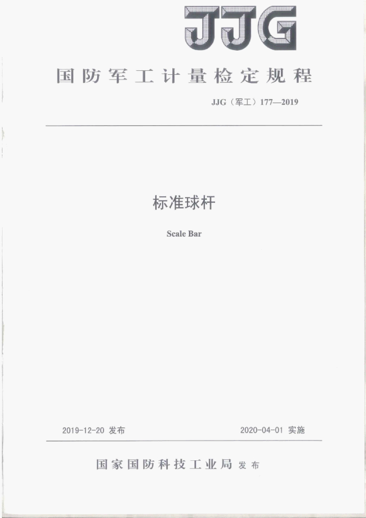 JJG(军工)177-2019 标准球杆检定规程
