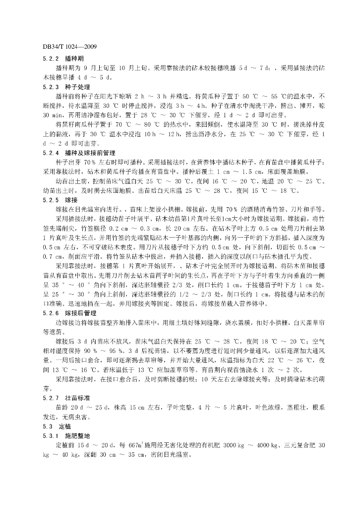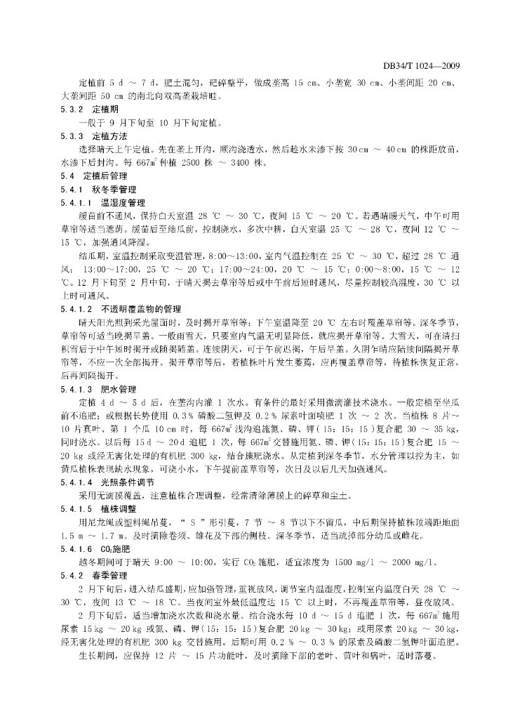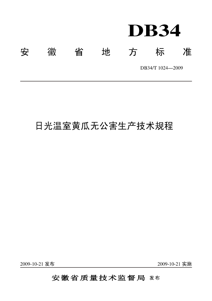 DB34/T 1024-2009 日光温室黄瓜无公害生产技术规程