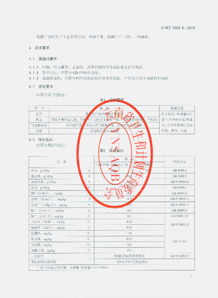 Q/SFZ 0003S-2015 云南山夫子生物科技有限公司 玛咖干制品