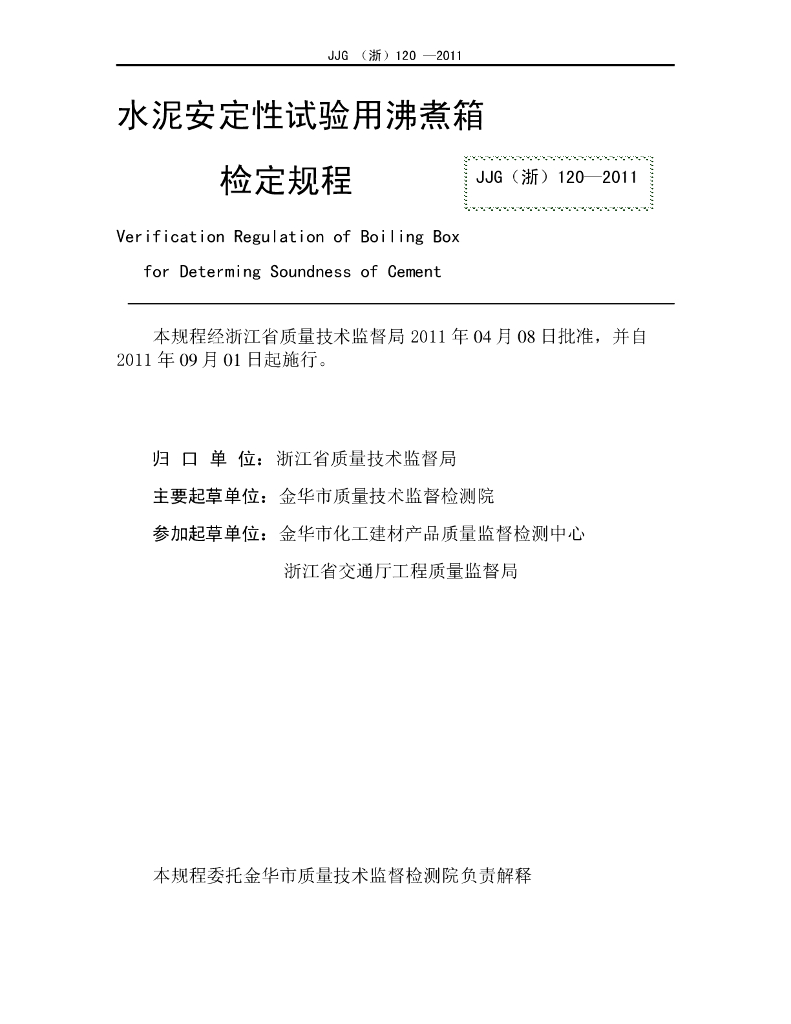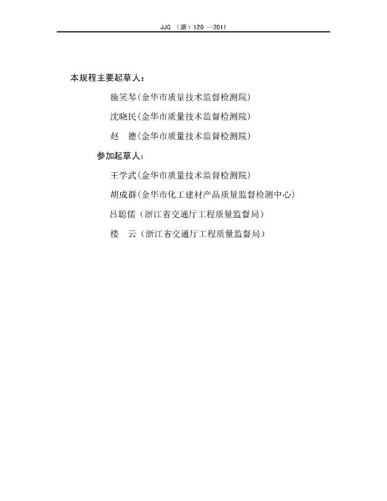 施笑琴(金华市质量技术监督检测院)、沈晓民(金华市质量技术监督检测院)、赵德(金华市质量技术监督检测院)、王学武(金华市质量技术监督检测院)、胡成群(金华市化工建材产品质量监督检测中心)、吕聪儒(浙江省交通厅工程质量监督局)、楼云(浙江省交通厅工程质量监督局)