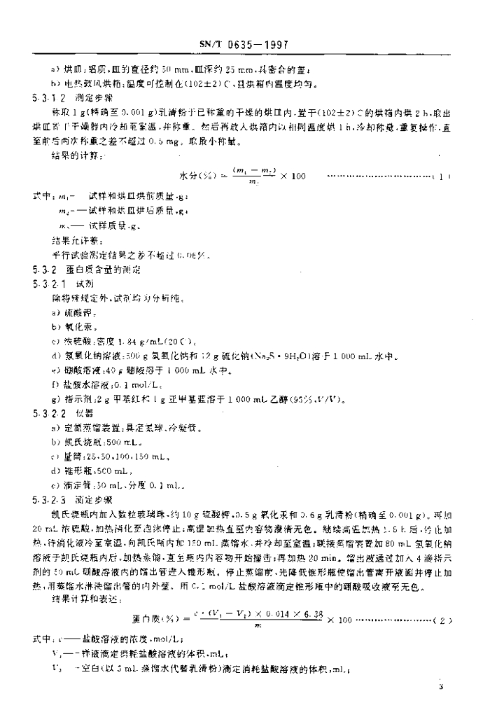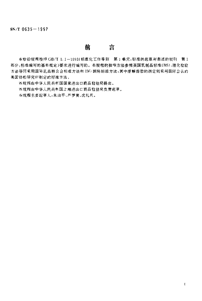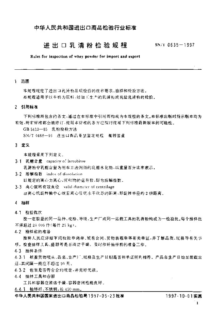 SN/T 0635-1997 进出口乳清粉检验规程