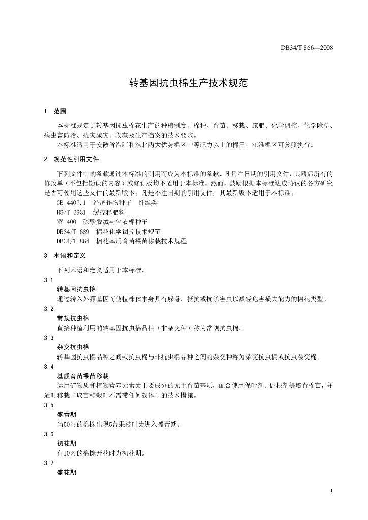 DB34/T 866-2008 转基因抗虫棉生产技术规范