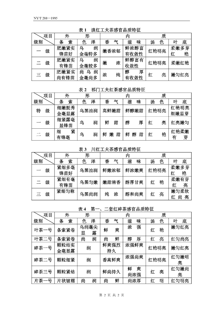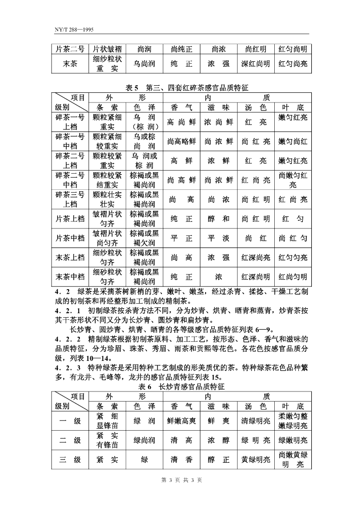 NY/T 288-1995 绿色食品 红茶和绿茶