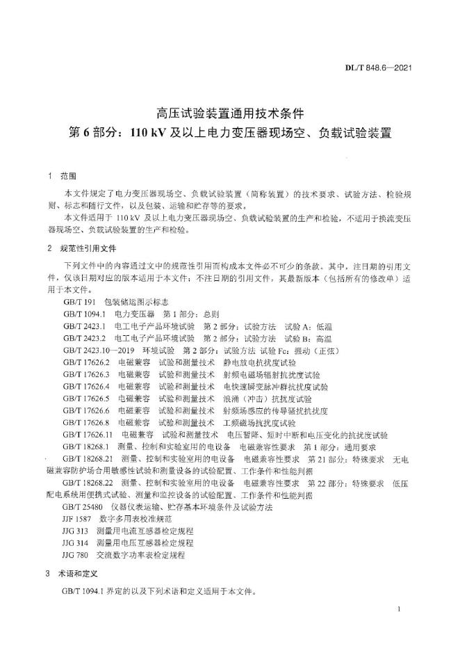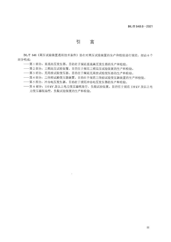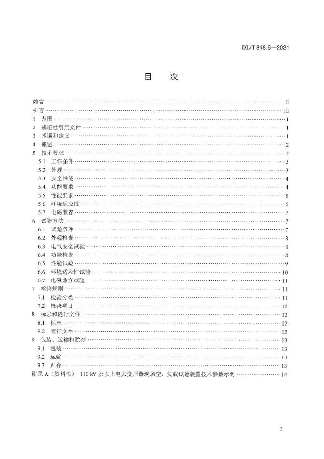 DL/T 848.6-2021 高压试验装置通用技术条件 第6部分:110kV及以上电力变压器现场空、负载试验装置