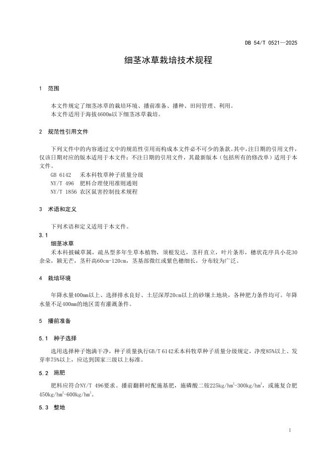DB54/T 0521-2025 细茎冰草栽培技术规程