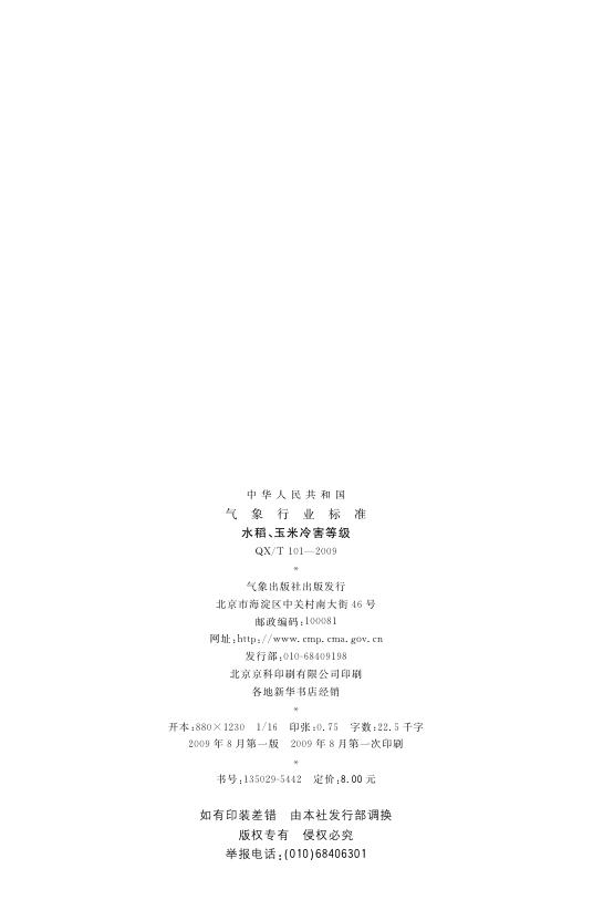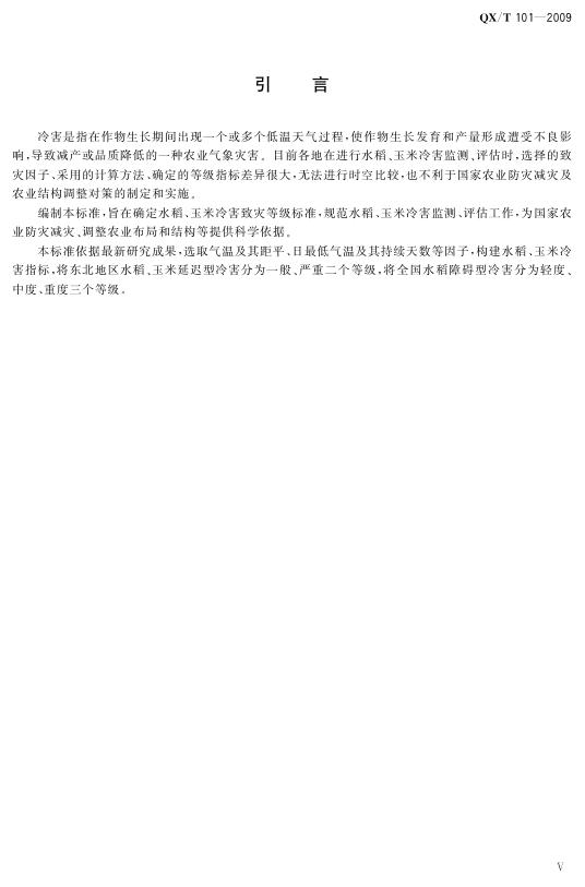 QX/T 101-2009 水稻、玉米冷害等级