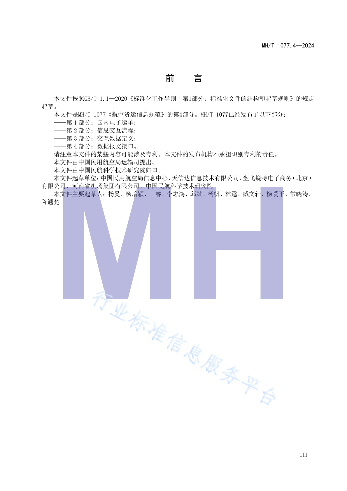 MH/T 1077.4-2024 航空货运信息规范 第4部分:数据报文接口
