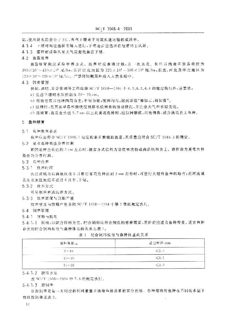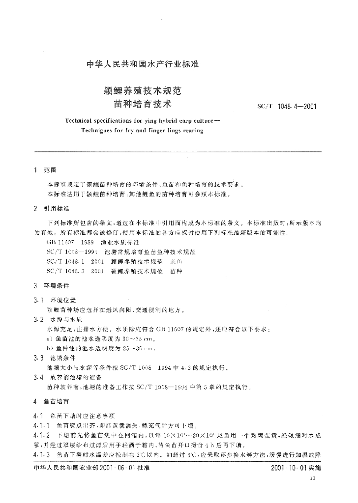 SC/T 1048.4-2001 颖鲤养殖技术规范 苗种培育技术