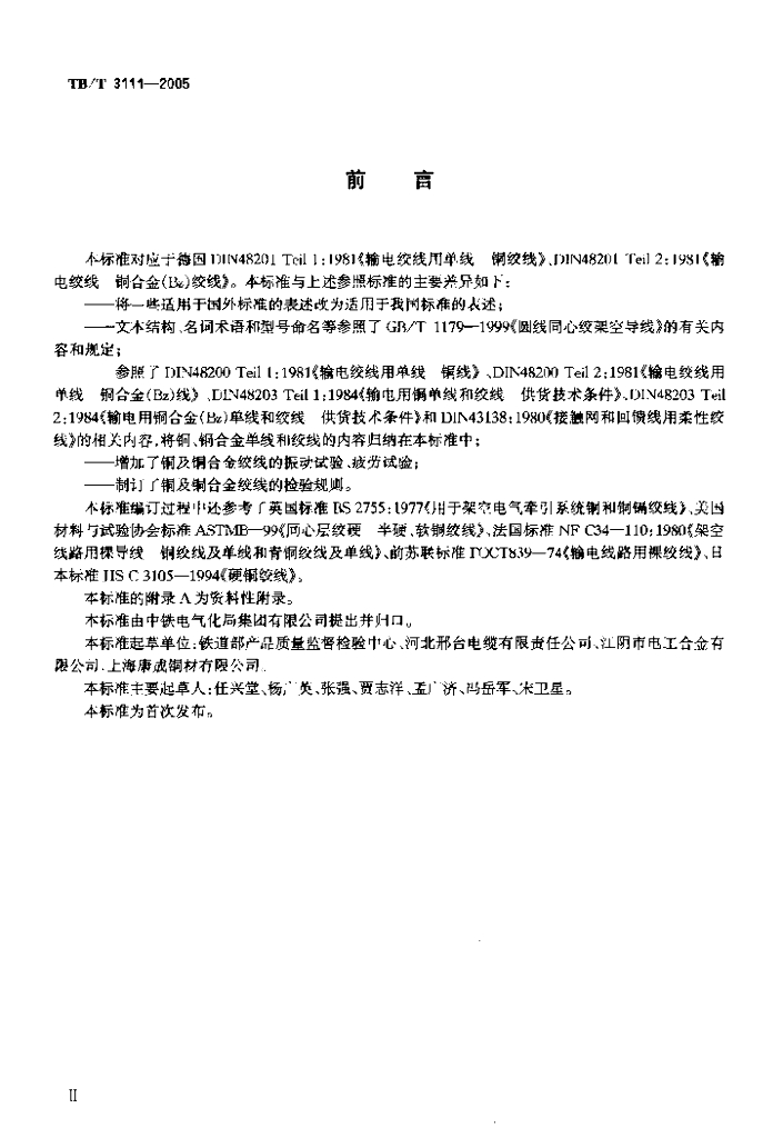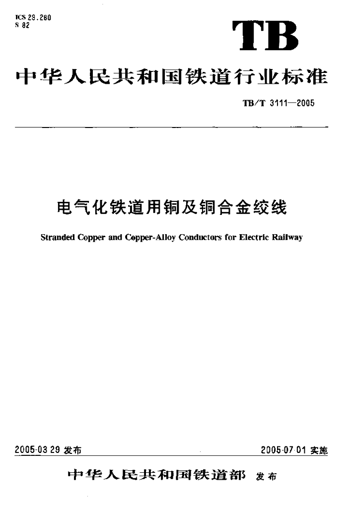 TB/T 3111-2005 电气化铁道用铜及铜合金绞线
