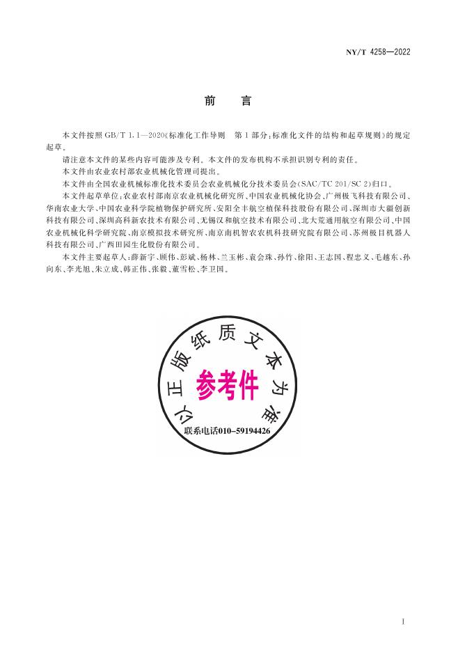 农业农村部南京农业机械化研究所、中国农业机械化协会、广州极飞科技有限公司、华南农业大学、中国农业科学院植物保护研究所、安阳全丰航空植保科技股份有限公司、深圳市大疆创新科技有限公司、深圳高科新农技术有限公司、无锡汉和航空技术有限公司、北大荒通用航空有限公司、中国农业机械化科学研究院、南京模拟技术研究所、南京南机智农农机科技研究院有限公司、苏州极目机器人科技有限公司、广西田园生化股份有限公司