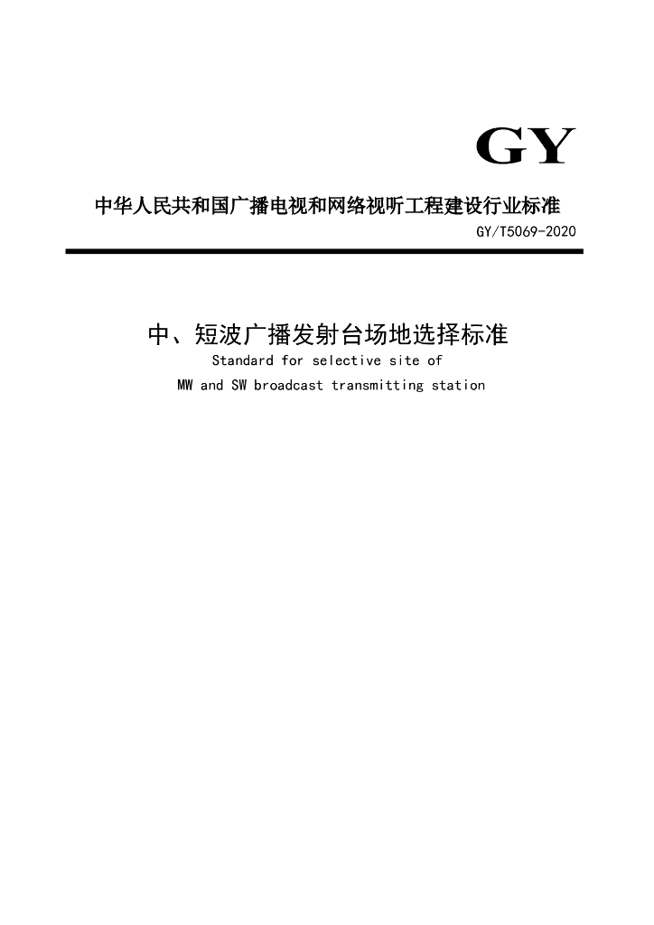 GY/T 5069-2020 中、短波广播发射台场地选择标准