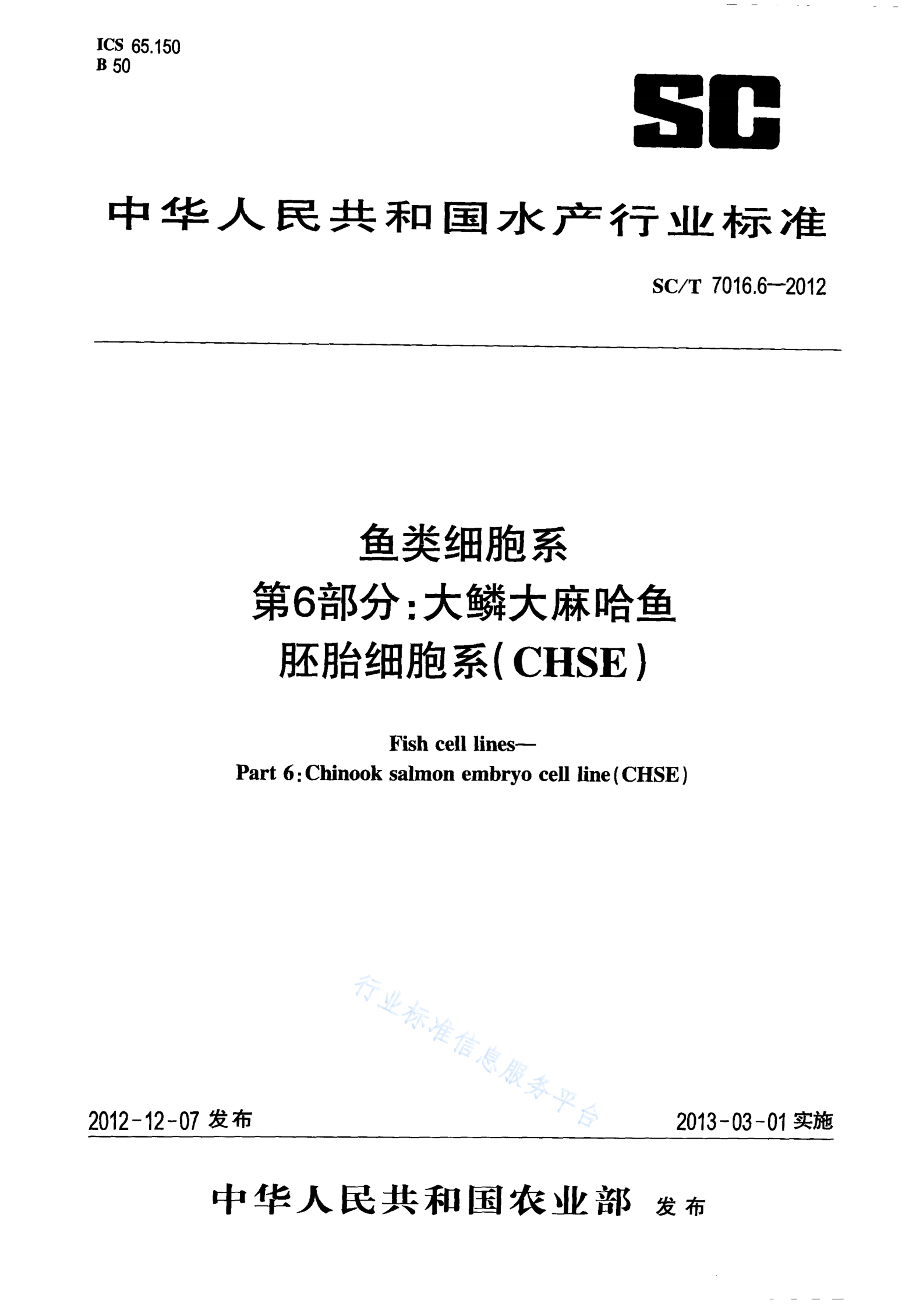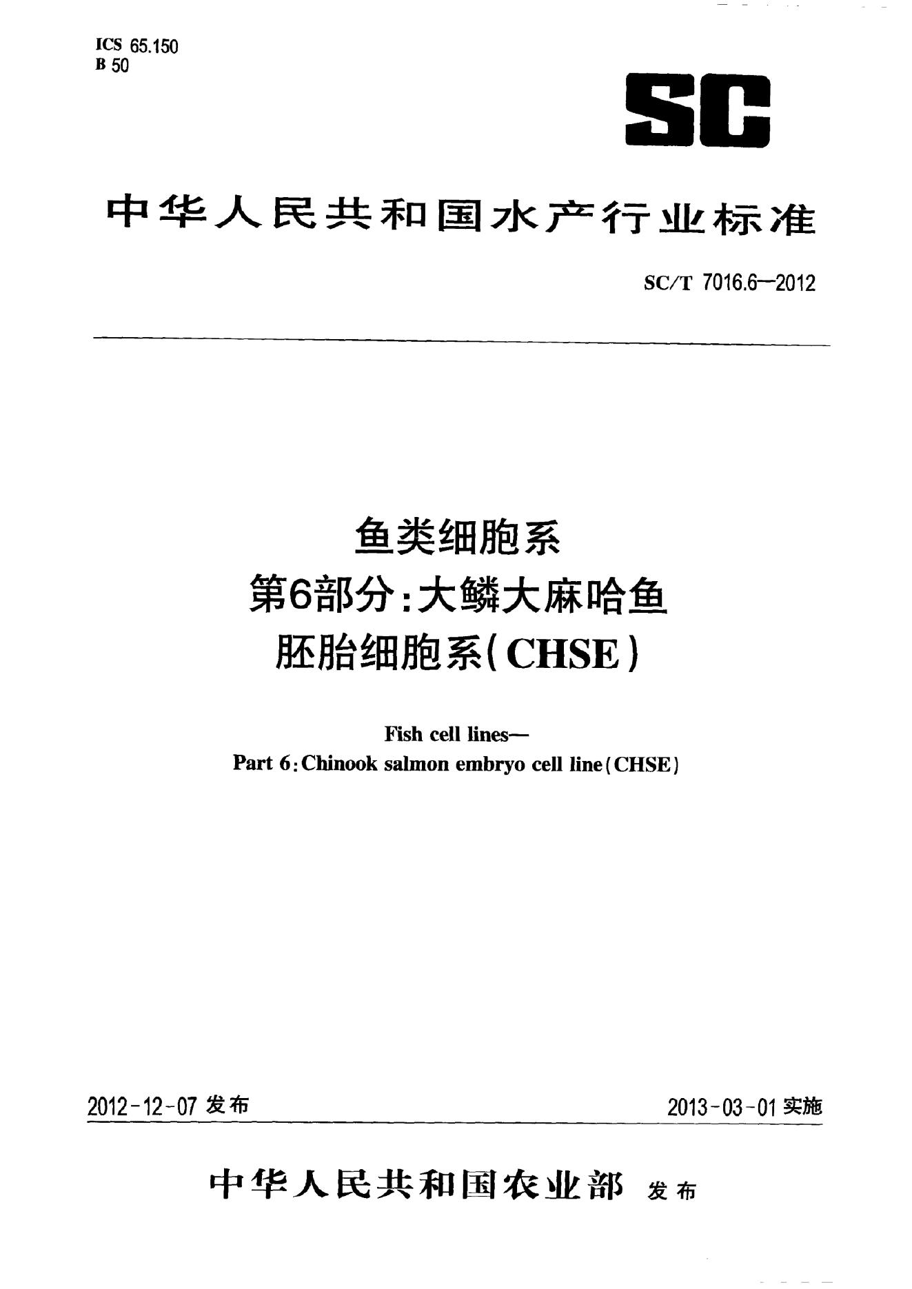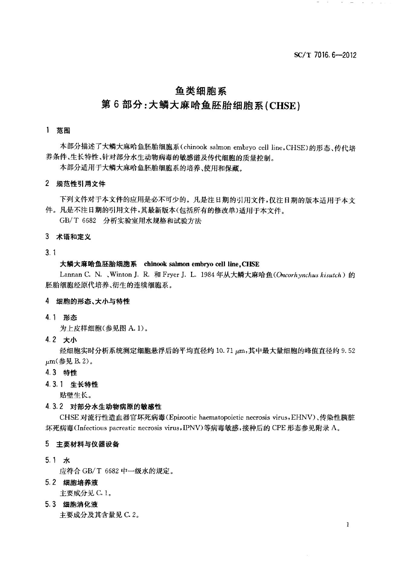 SC/T 7016.6-2012 鱼类细胞系 第6部分:大鳞大麻哈鱼胚胎细胞系(CHSE)