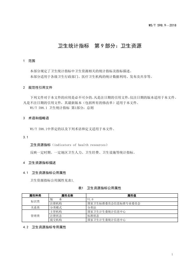 WS/T 598.9-2018 卫生统计指标 第9部分:卫生资源