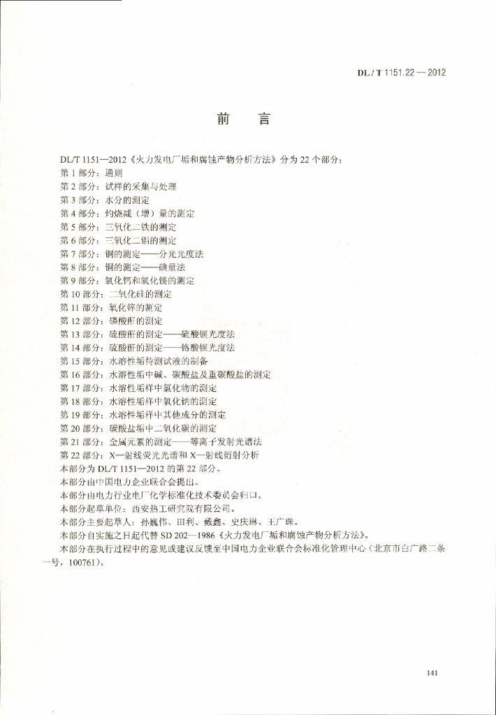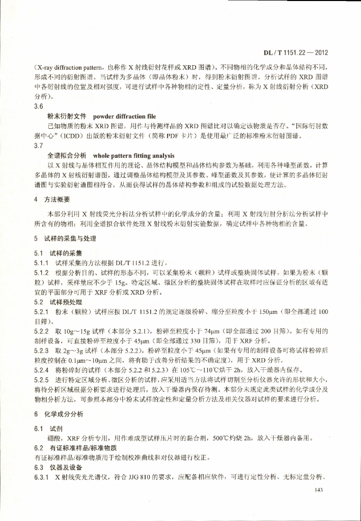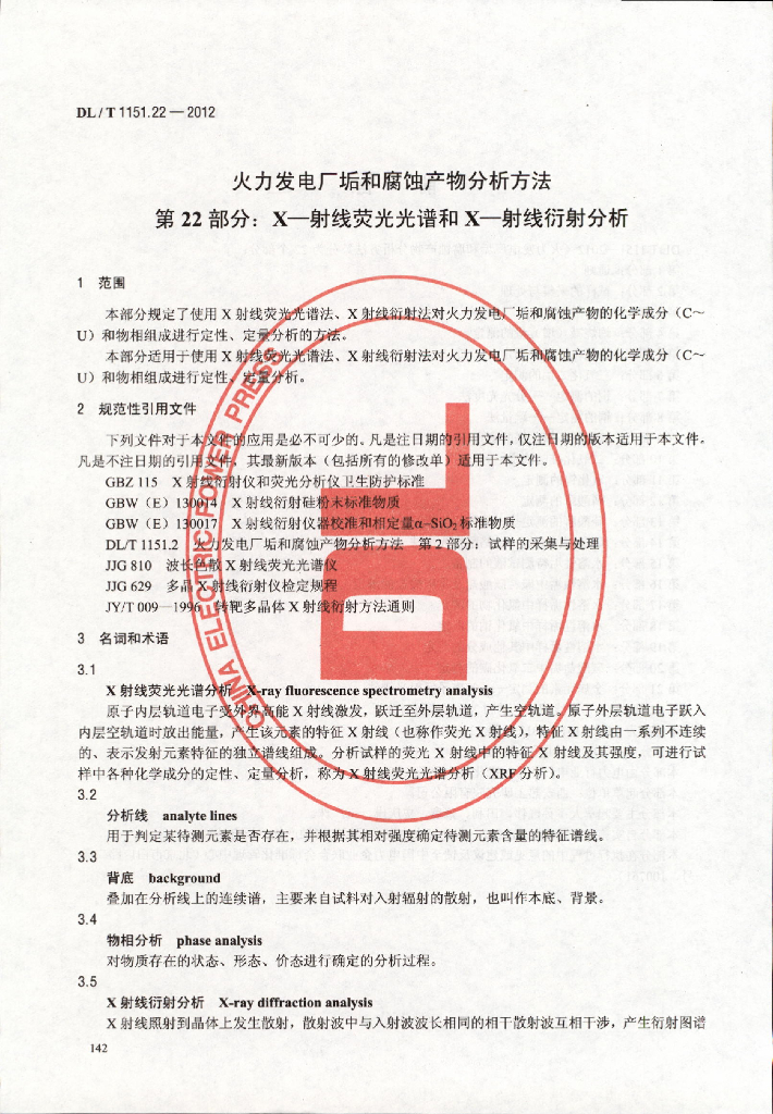 DL/T 1151.22-2012 火力发电厂垢和腐蚀产物分析方法 第22部分:X-射线荧光光谱和X-射线衍射分析