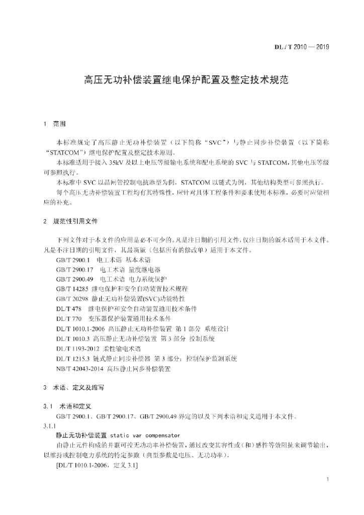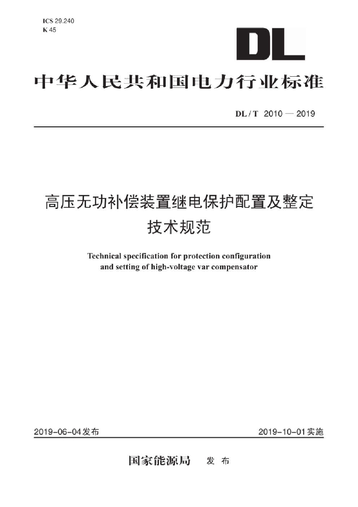 DL/T 2010-2019 高压无功补偿装置继电保护配置及整定技术规范