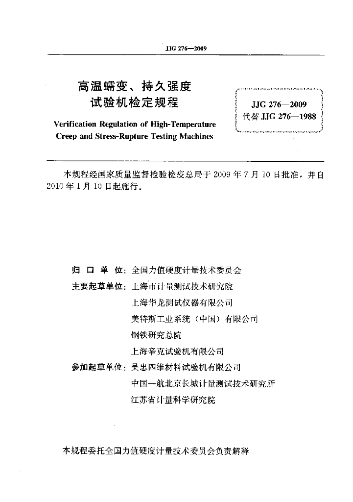 上海市计量测试技术研究院、上海华龙测试仪器有限公司、美特斯工业系统(中国)有限公司、钢铁研究总院、上海辛克试验机有限公司、吴忠四维材料试验机有限公司、中国-航北京长城计量测试技术研究所、江苏省计量科学研究院