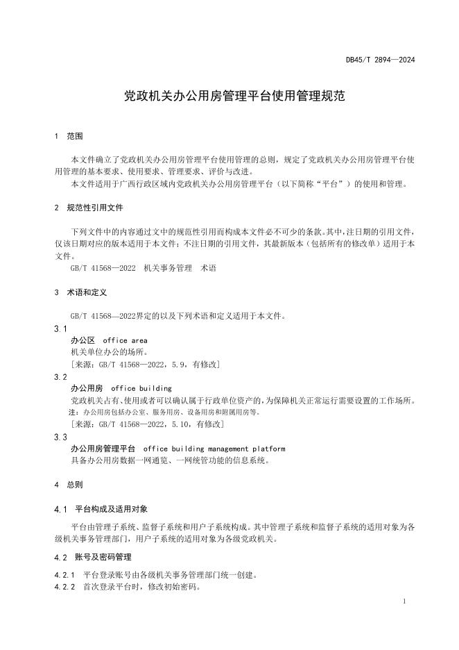 DB45/T 2894-2024 党政机关办公用房管理平台使用管理规范