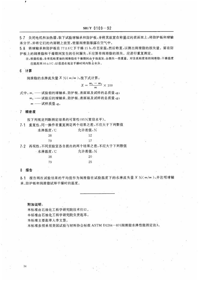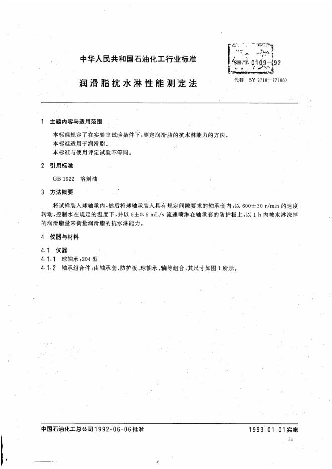 SH/T 0109-1992 润滑脂抗水淋性能测定法
