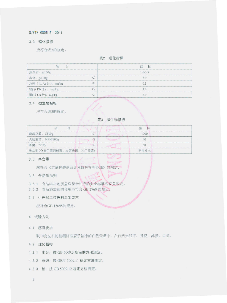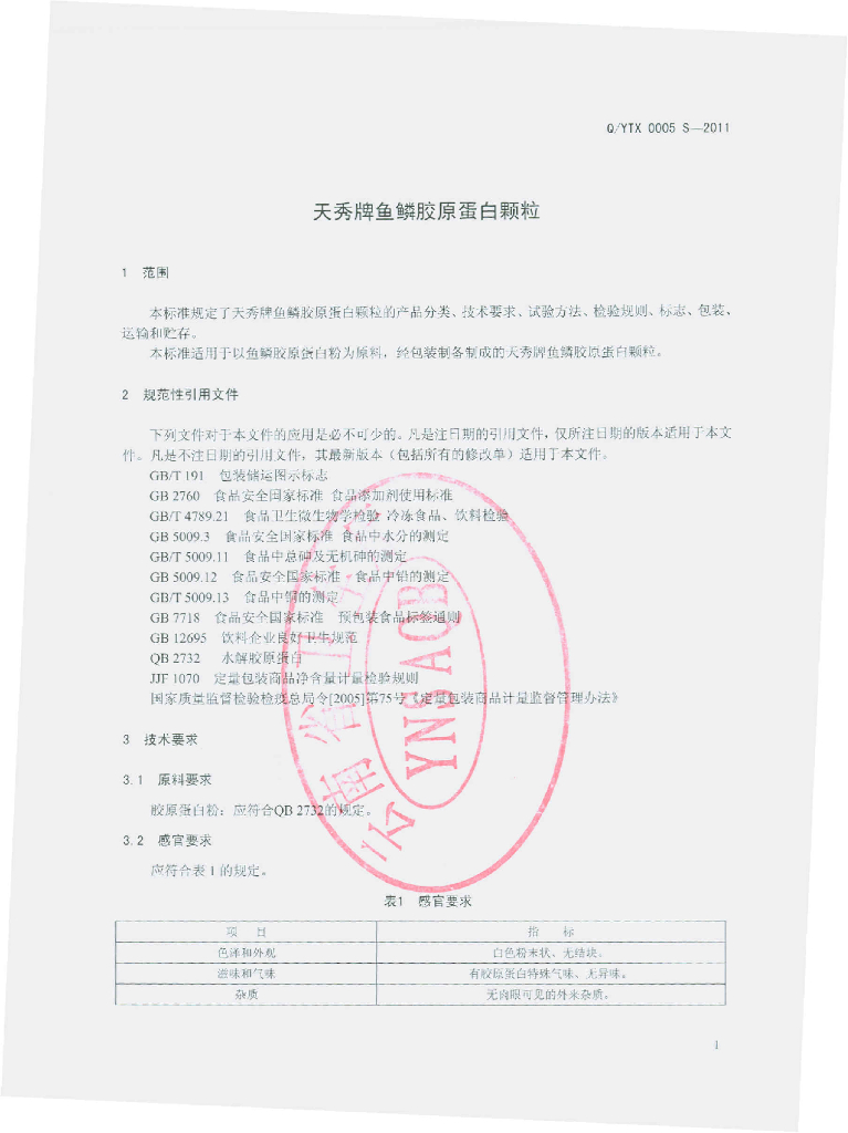 Q/YTX 0005S-2011 天秀牌鱼鳞胶原蛋白颗粒