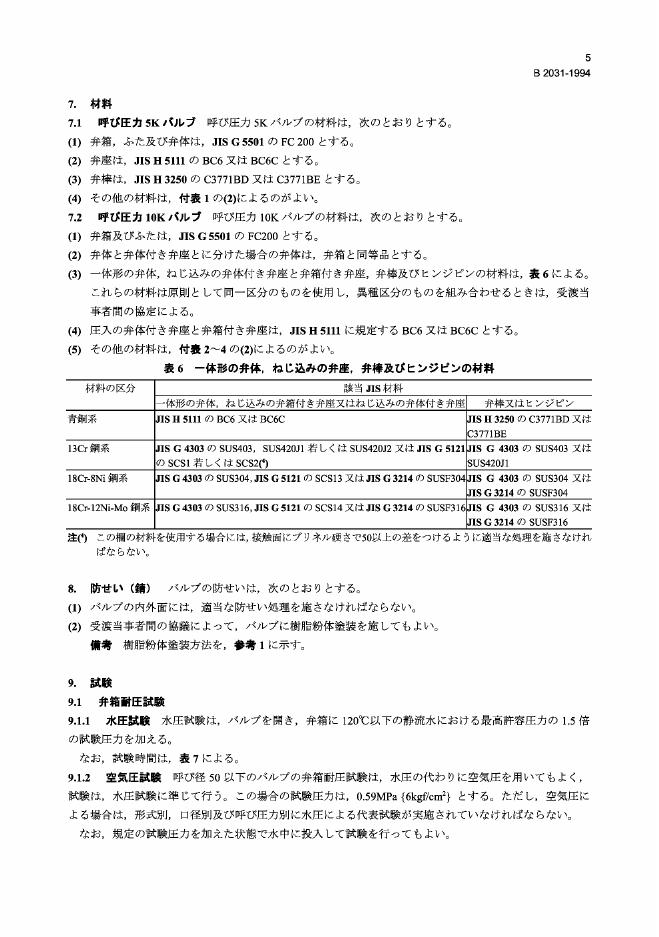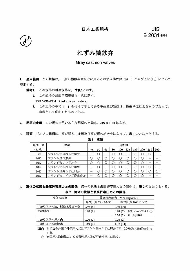 JIS B2031-1994 灰口铸铁阀门