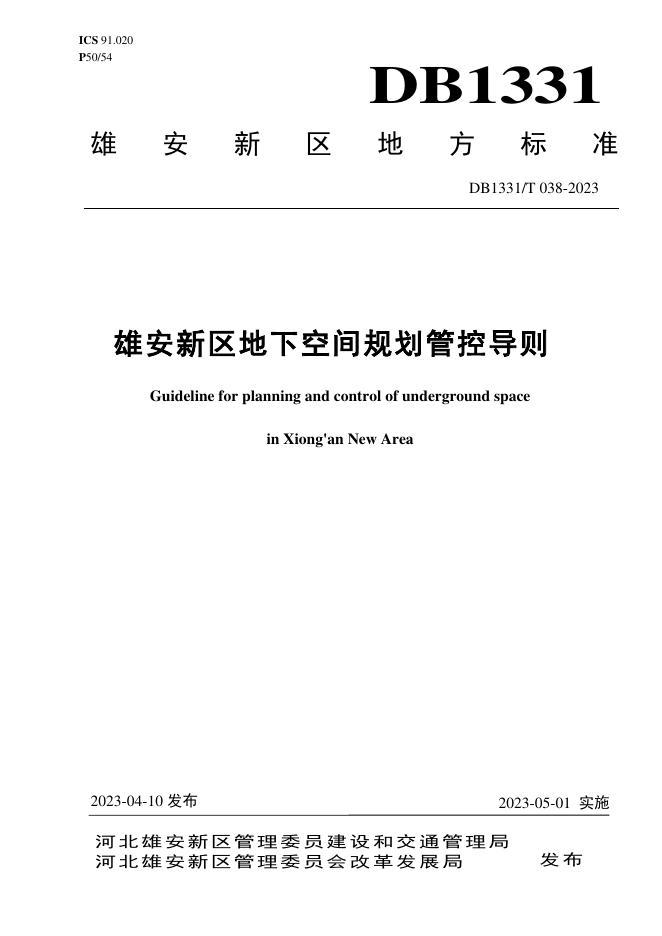 DB1331/T 038-2023 雄安新区地下空间规划管控导则