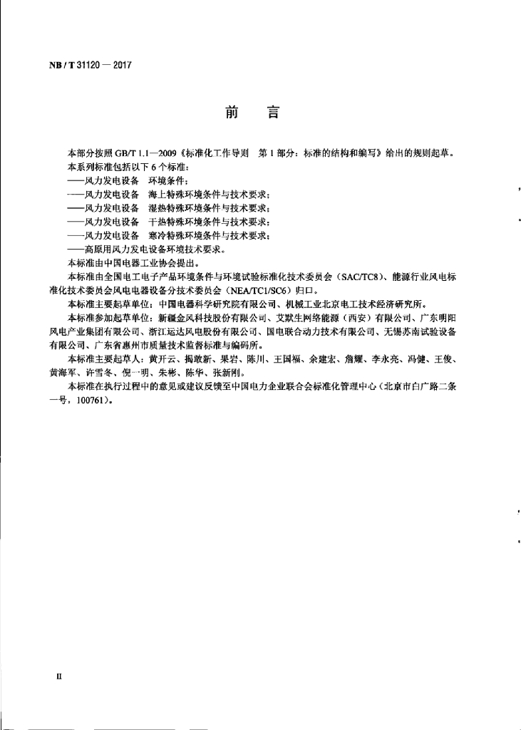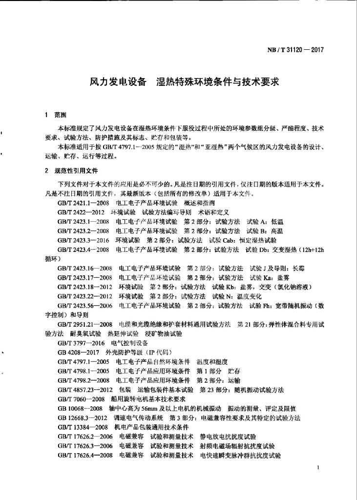 NB/T 31120-2017 风力发电设备湿热特殊环境条件与技术要求