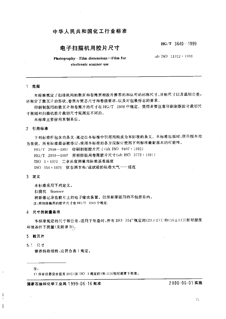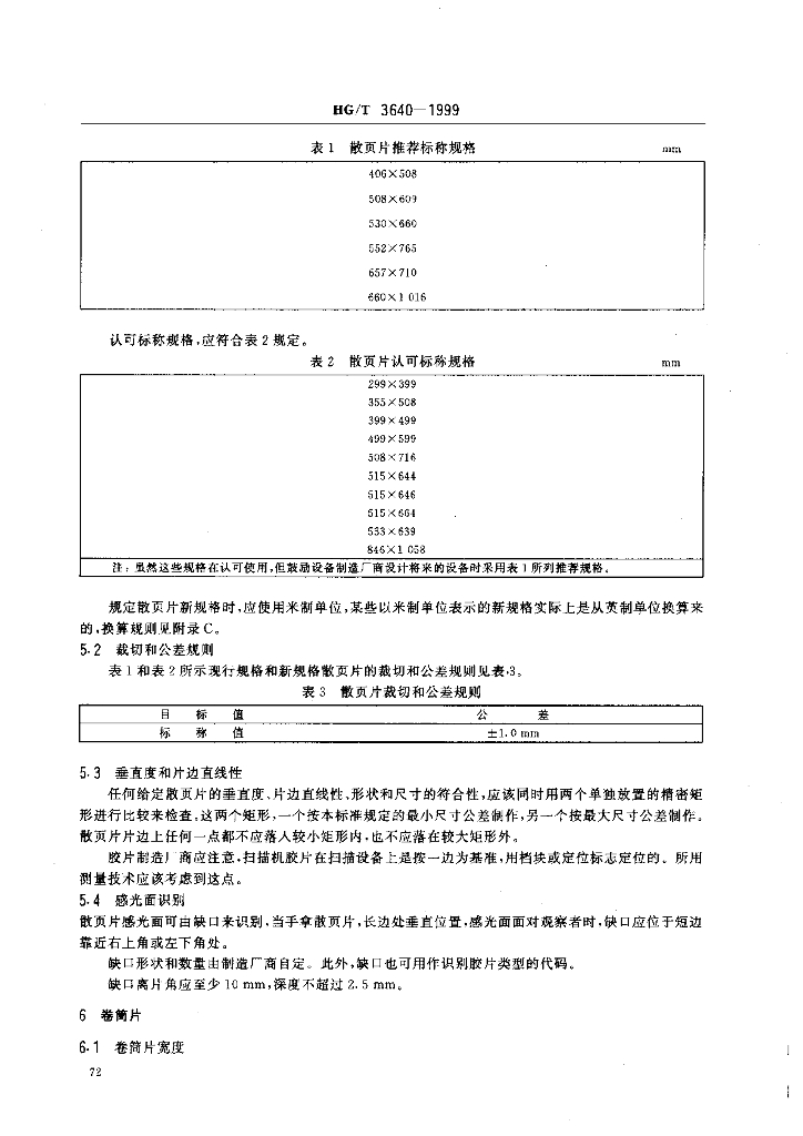 HG/T 3640-1999 电子扫描机用胶片尺寸