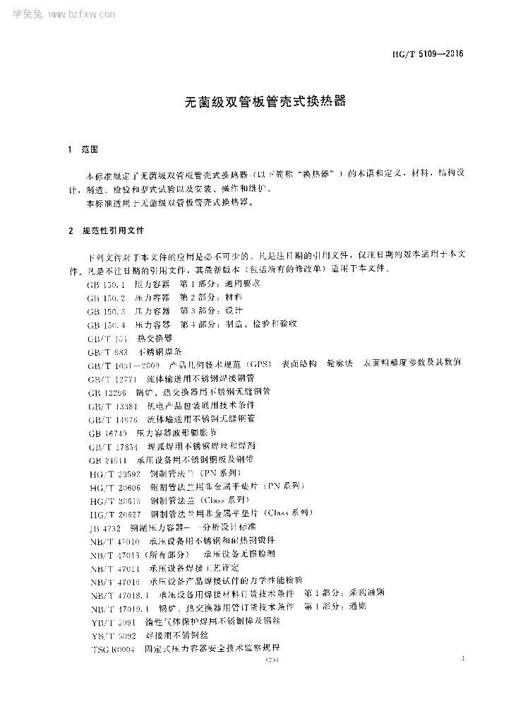 HG/T 5109-2016 无菌级双管板管壳式换热器