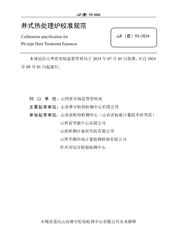 JJF(晋)93-2024 井式热处理炉校准规范