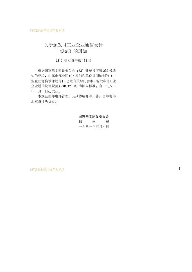 GBJ 42-1981 工业企业通信设计规范