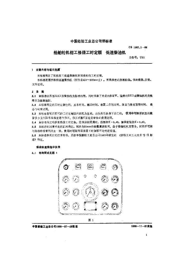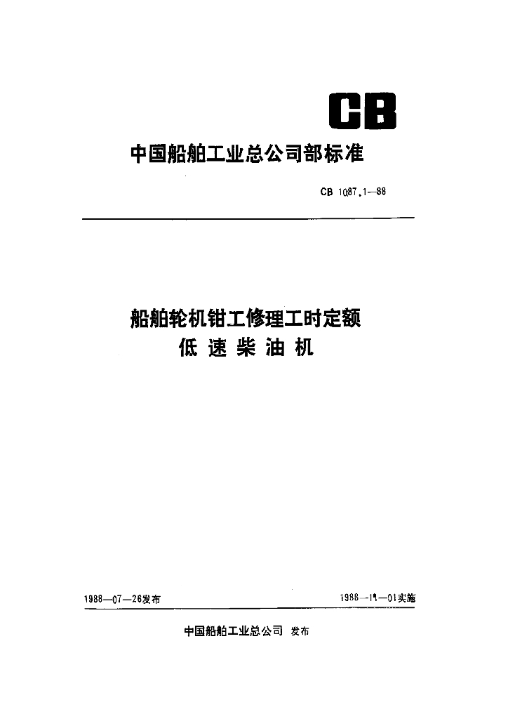 CB 1087.1-1988 船舶轮机钳工修理工时定额 低速柴油机