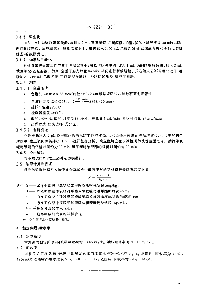 SN 0221-1993 出口禽肉中磺胺甲氧嘧啶、磺胺喹啉残留量检验方法