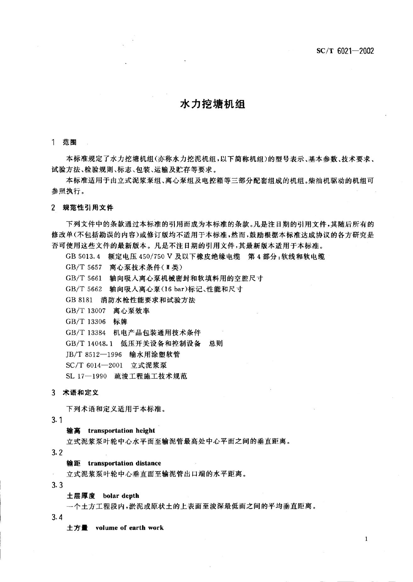 SC/T 6021-2002 水力挖塘机组