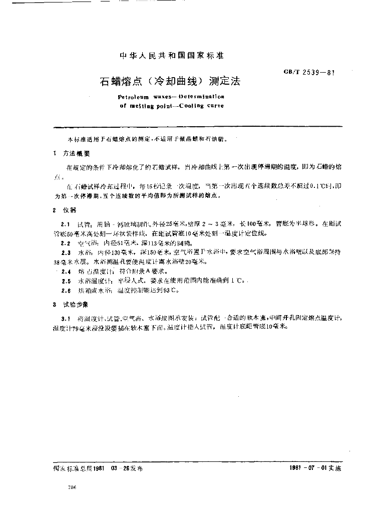 GB/T 2539-1981 石蜡溶点(冷却曲线)测定法