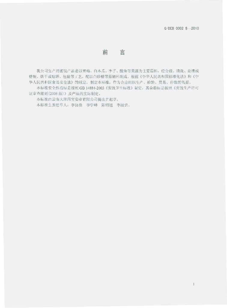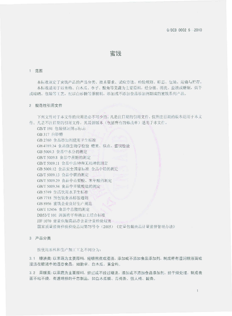 Q/DEB 0002S-2010 蜜饯