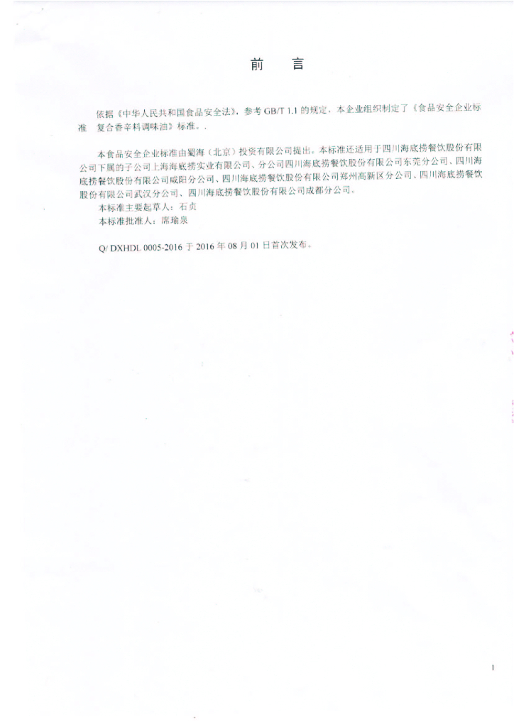 Q/DXHDL 0005-2016 蜀海(北京)投资有限公司 复合香辛料调味油
