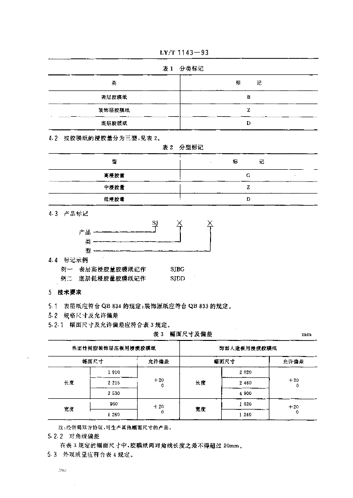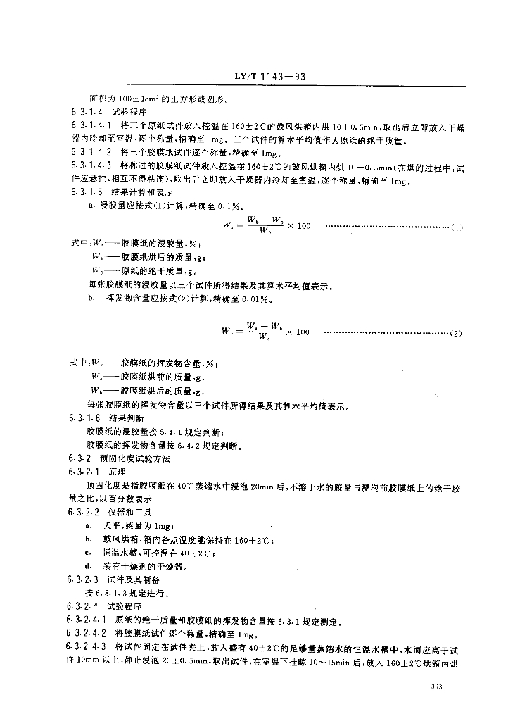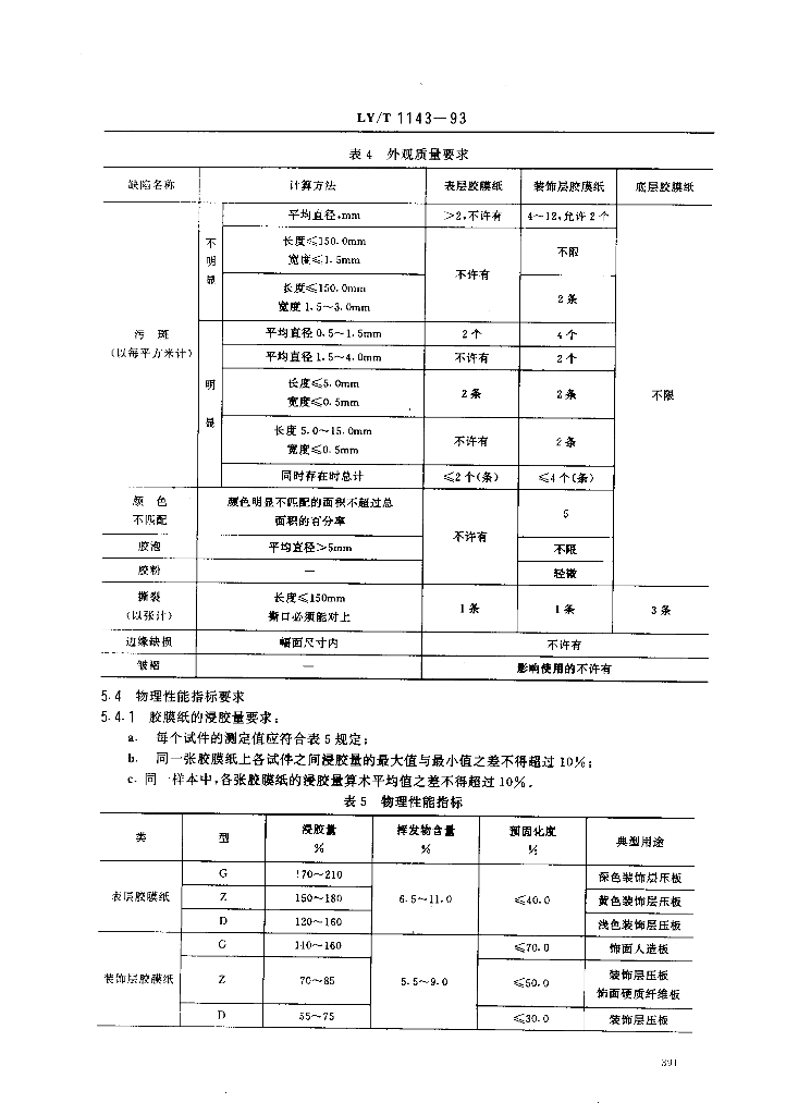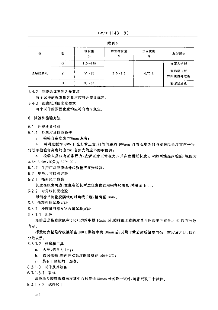 LY/T 1143-1993 饰面用浸渍胶膜纸