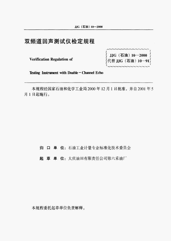JJG(石油)10-2000 双频道回声测试仪检定规程