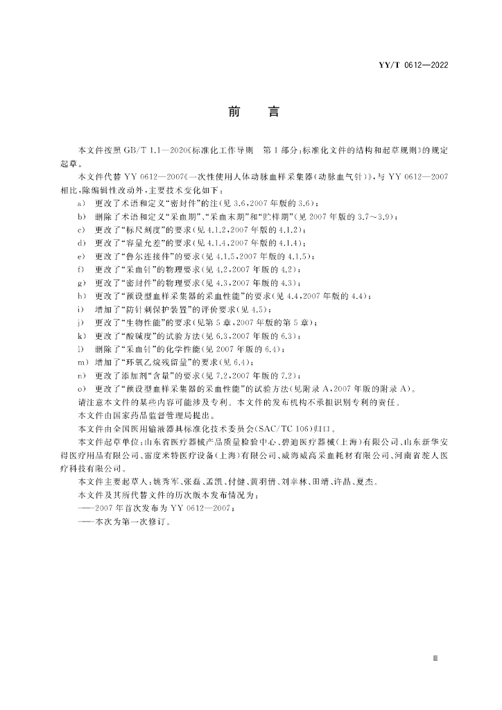 山东省医疗器械产品质量检验中心、碧迪医疗器械(上海)有限公司、山东新华安得医疗用品有限公司、雷度米特医疗设备(上海)有限公司、威海威高采血耗材有限公司、河南省驼人医疗科技有限公司