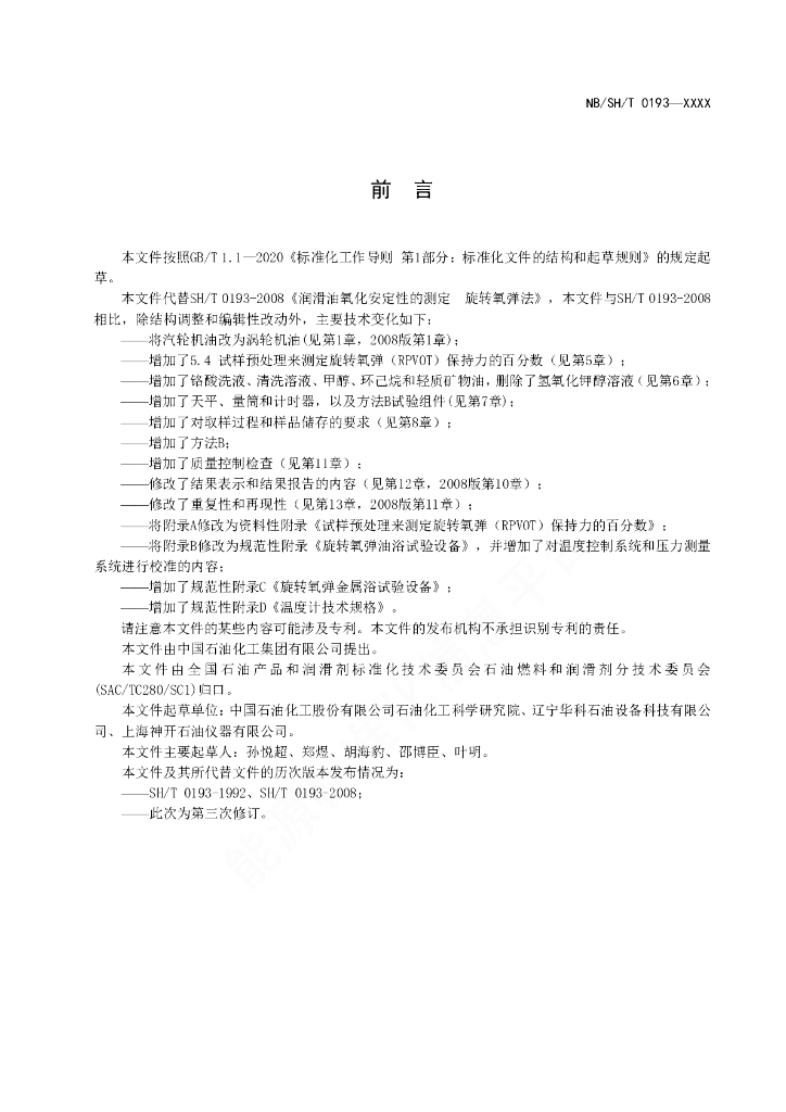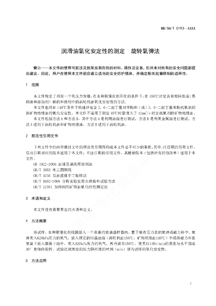 NB/SH/T 0193-2022 润滑油氧化安定性的测定 旋转氧弹法