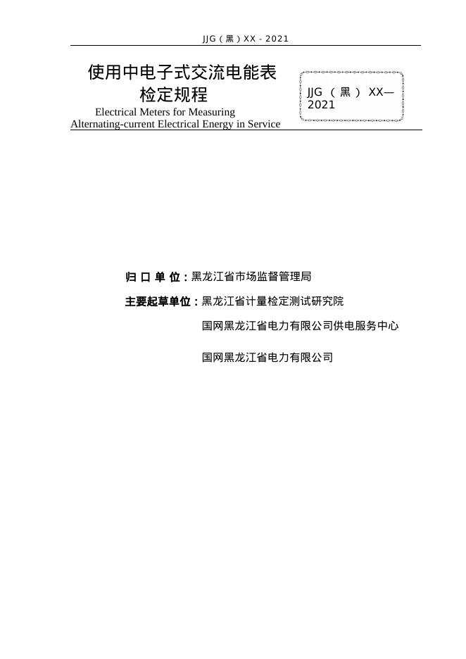 JJG(黑)16-2021 使用中电子式交流电能表检定规程