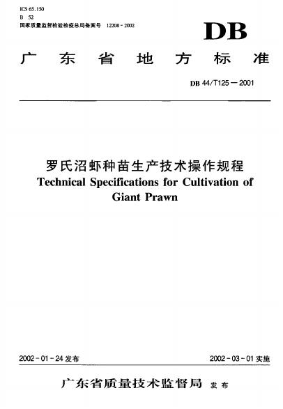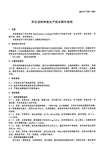 DB44/T 125-2001 罗氏沼虾种苗生产技术操作规程