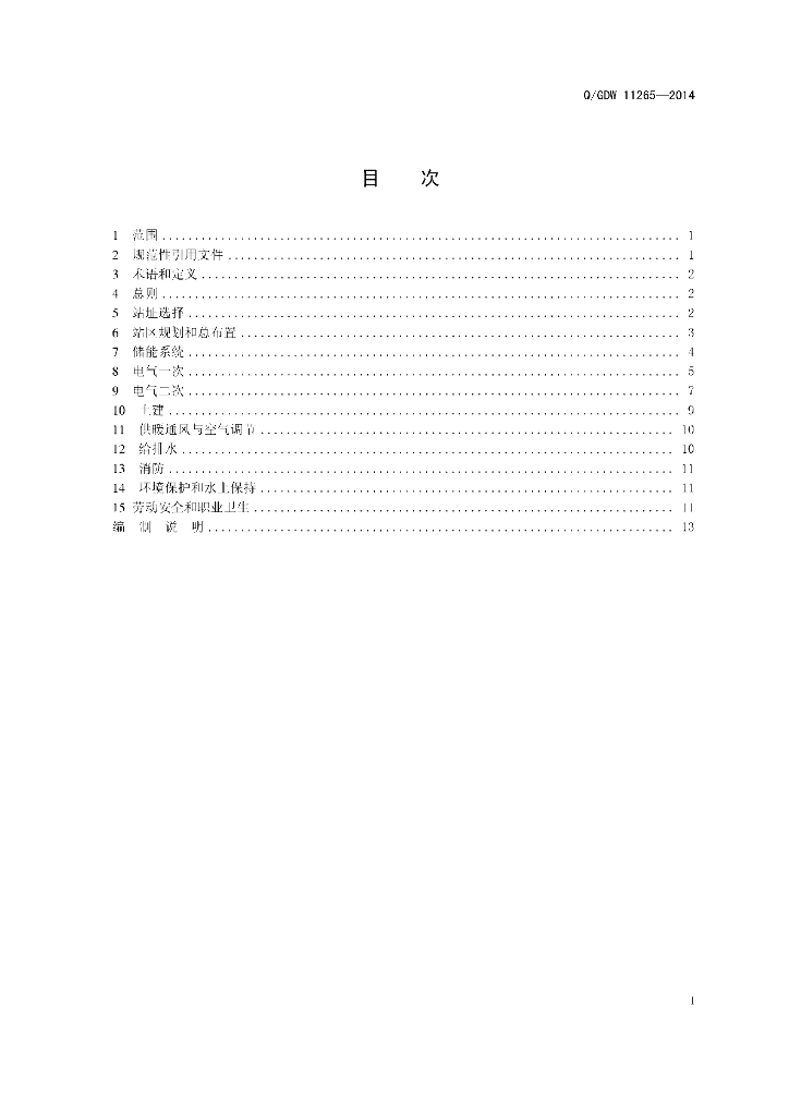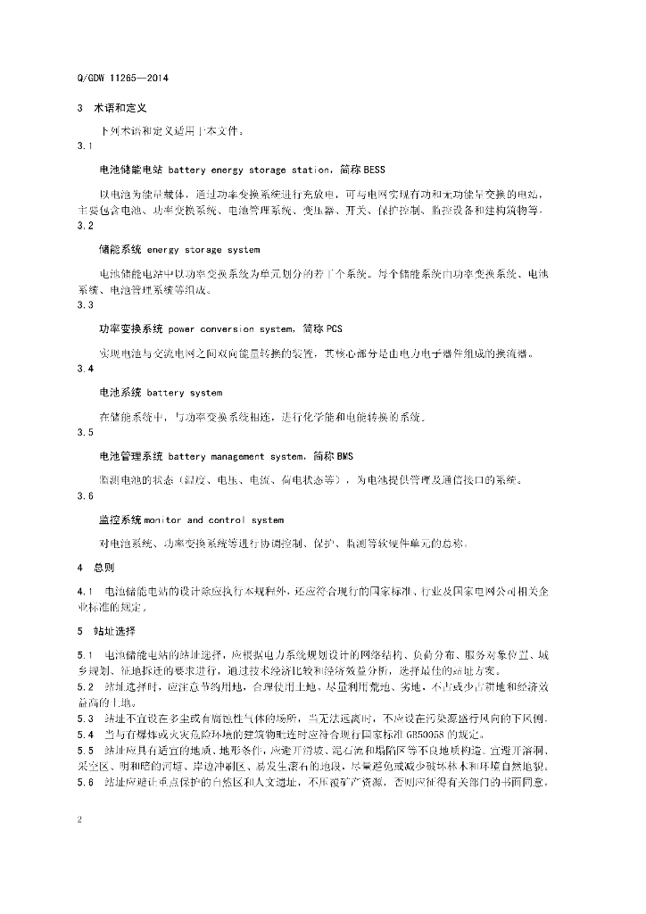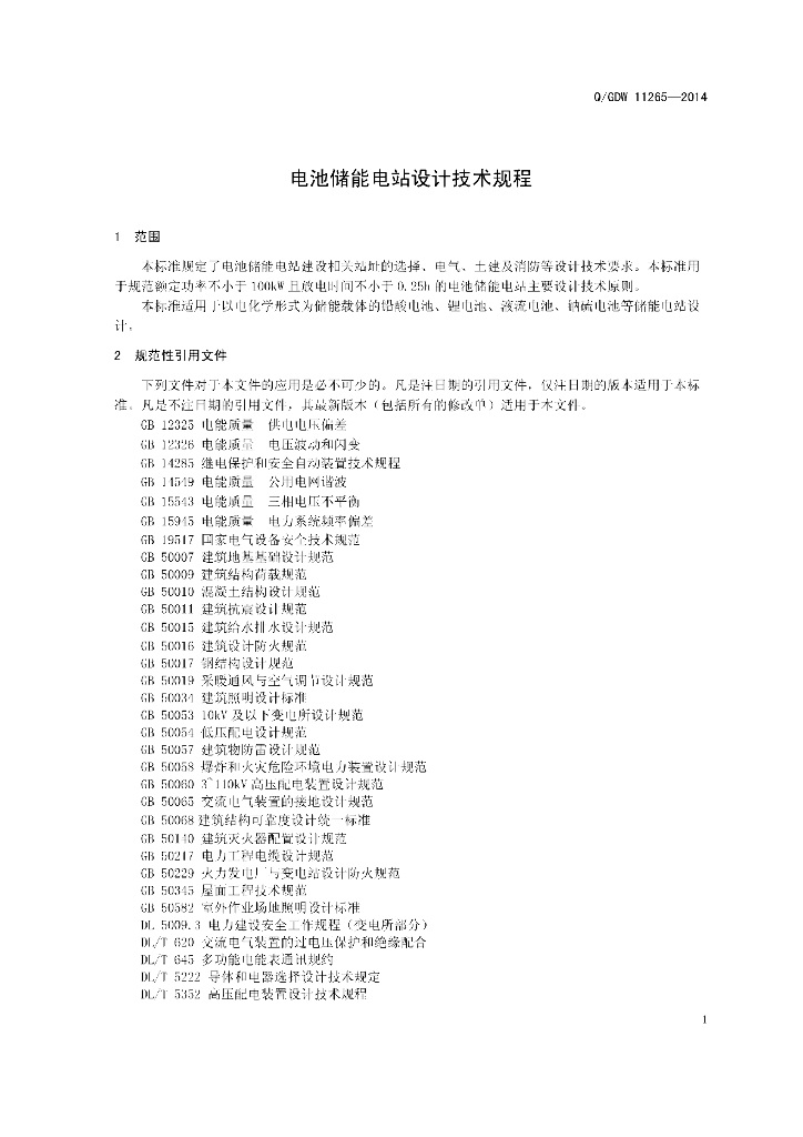 Q/GDW 11265-2014 电池储能电站设计技术规程