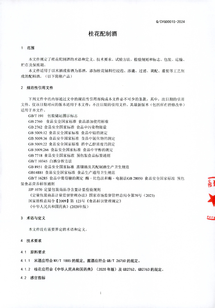 Q/CYG 0001S-2024 桂花配制酒