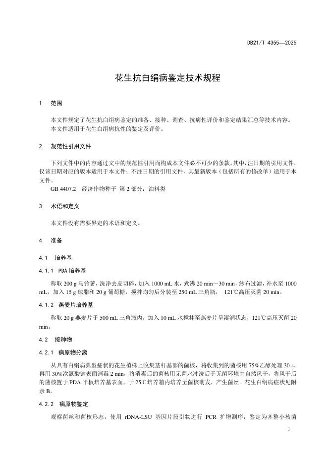 DB21/T 4355-2025 花生抗白绢病鉴定技术规程