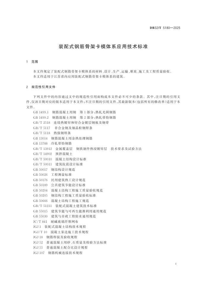 DB32/T 5180-2025 装配式钢筋骨架卡模体系应用技术标准