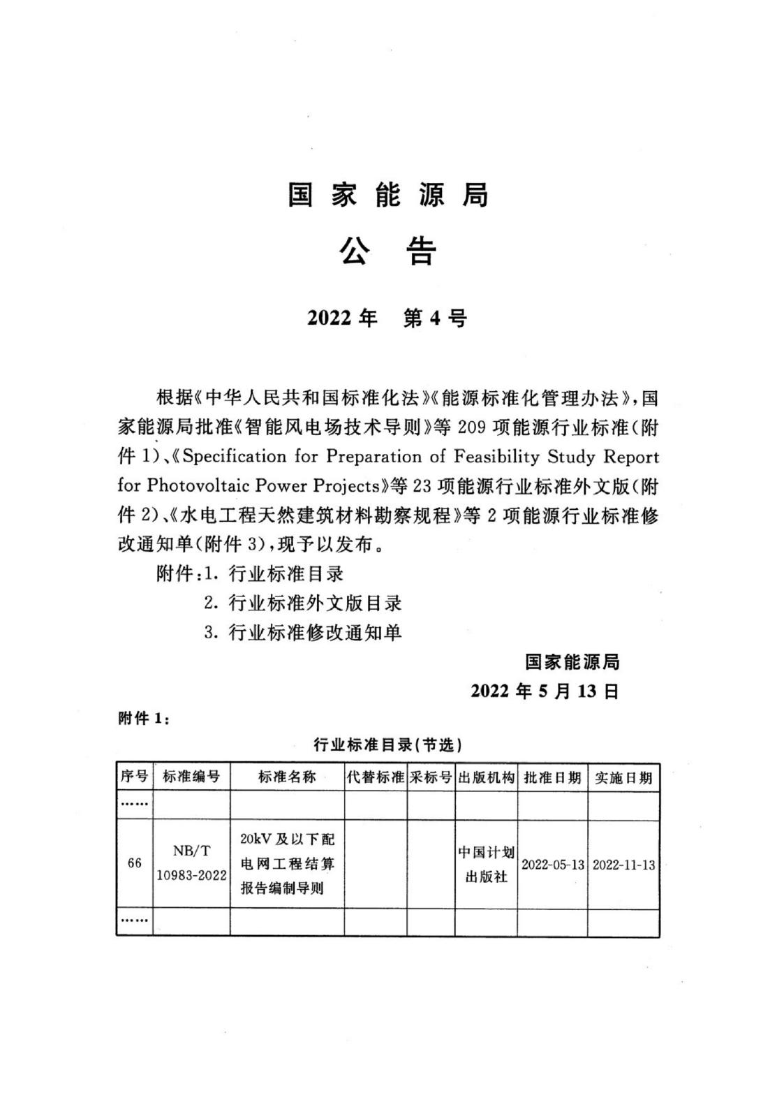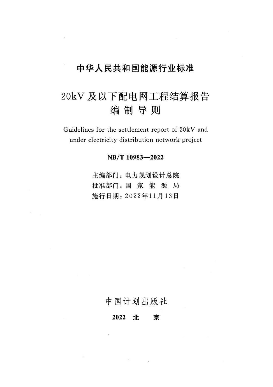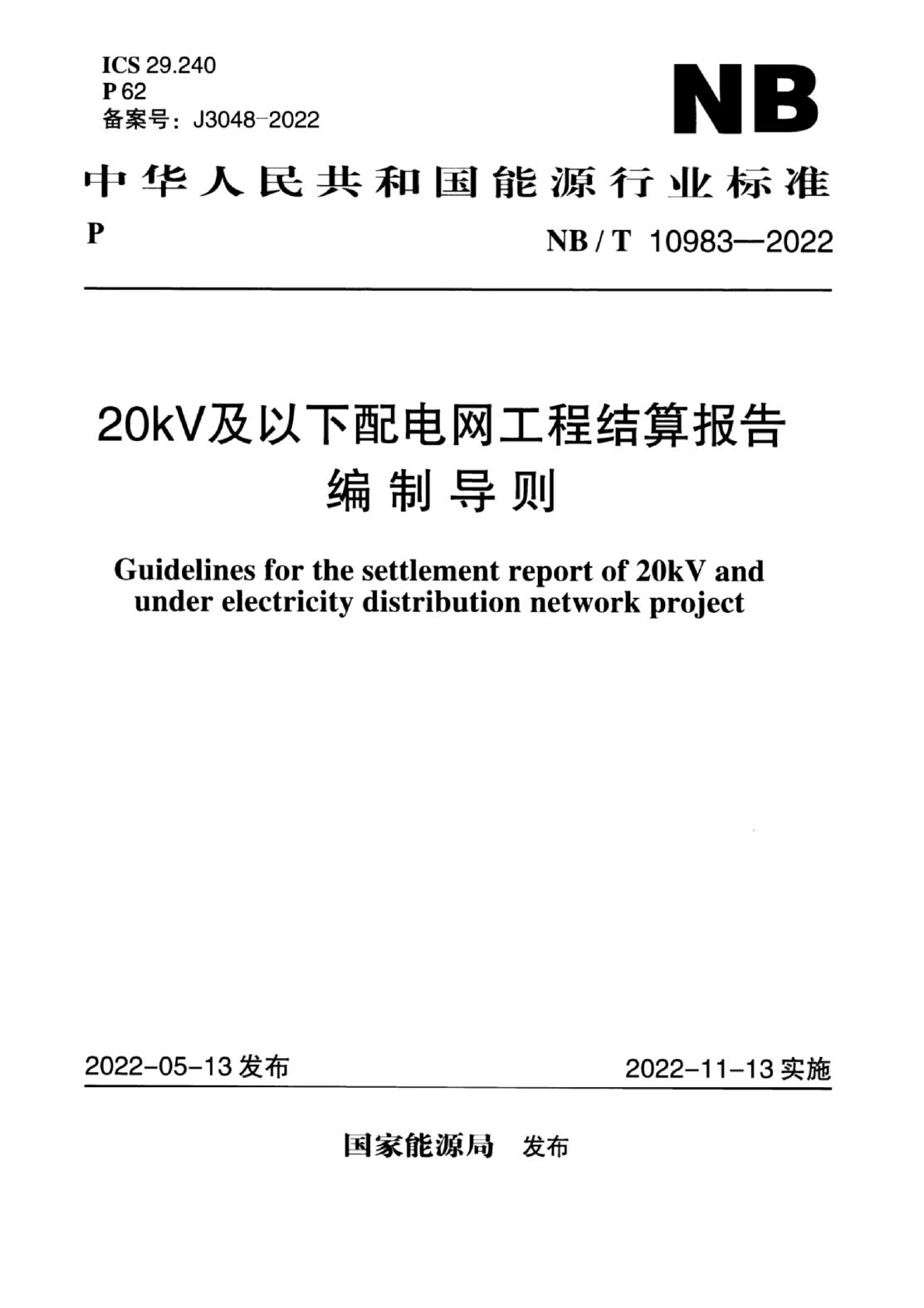 NB/T 10983-2022 20kV及以下配电网工程结算报告编制导则(附条文说明)