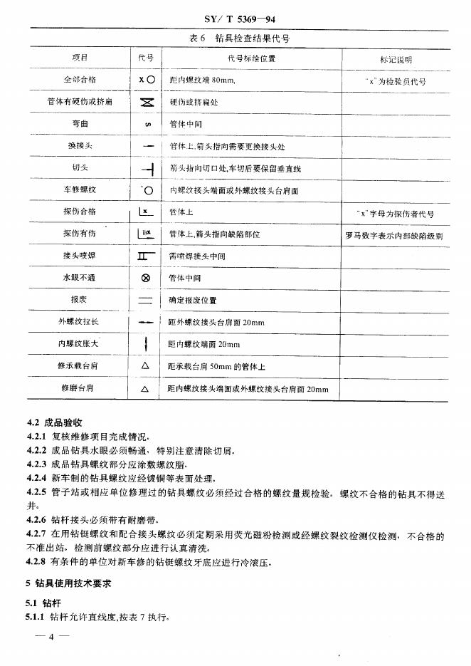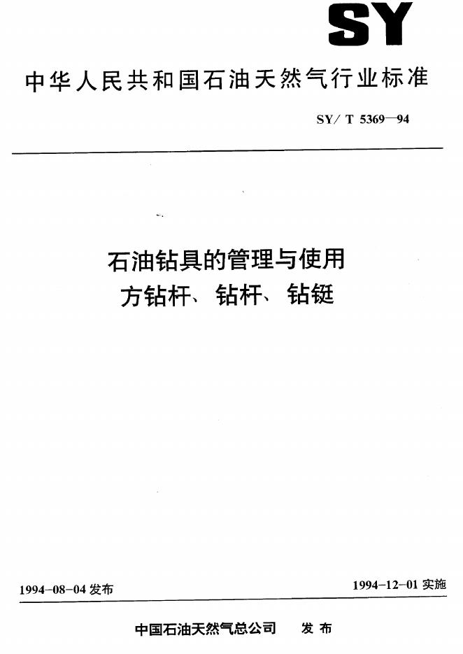 SY/T 5369-1994 石油钻具的管理与使用 方钻杆 钻杆 钻铤